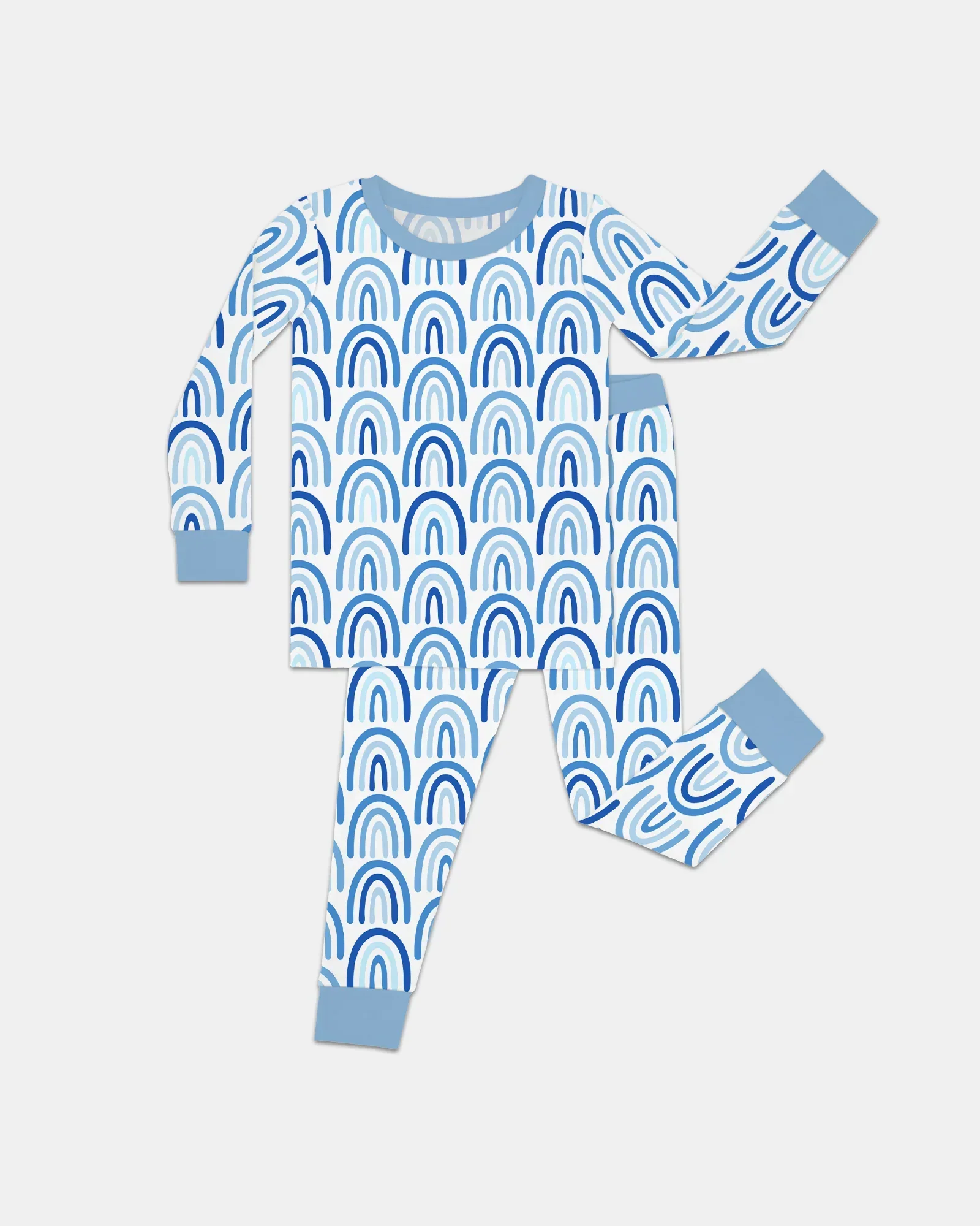 Sky Blue Rainbows Two Piece Long Sleeve Pajama Set