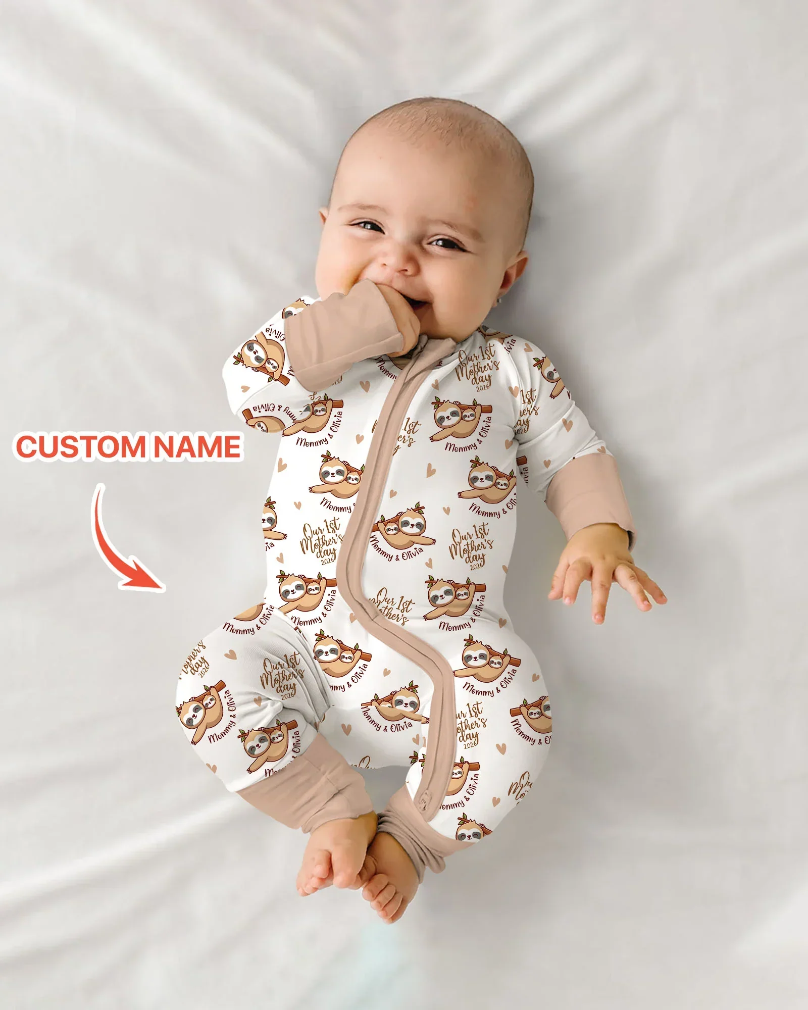 Custom Name Mama & Baby Sloth – Our First Mother’s Day 2026 Convertible Zippy